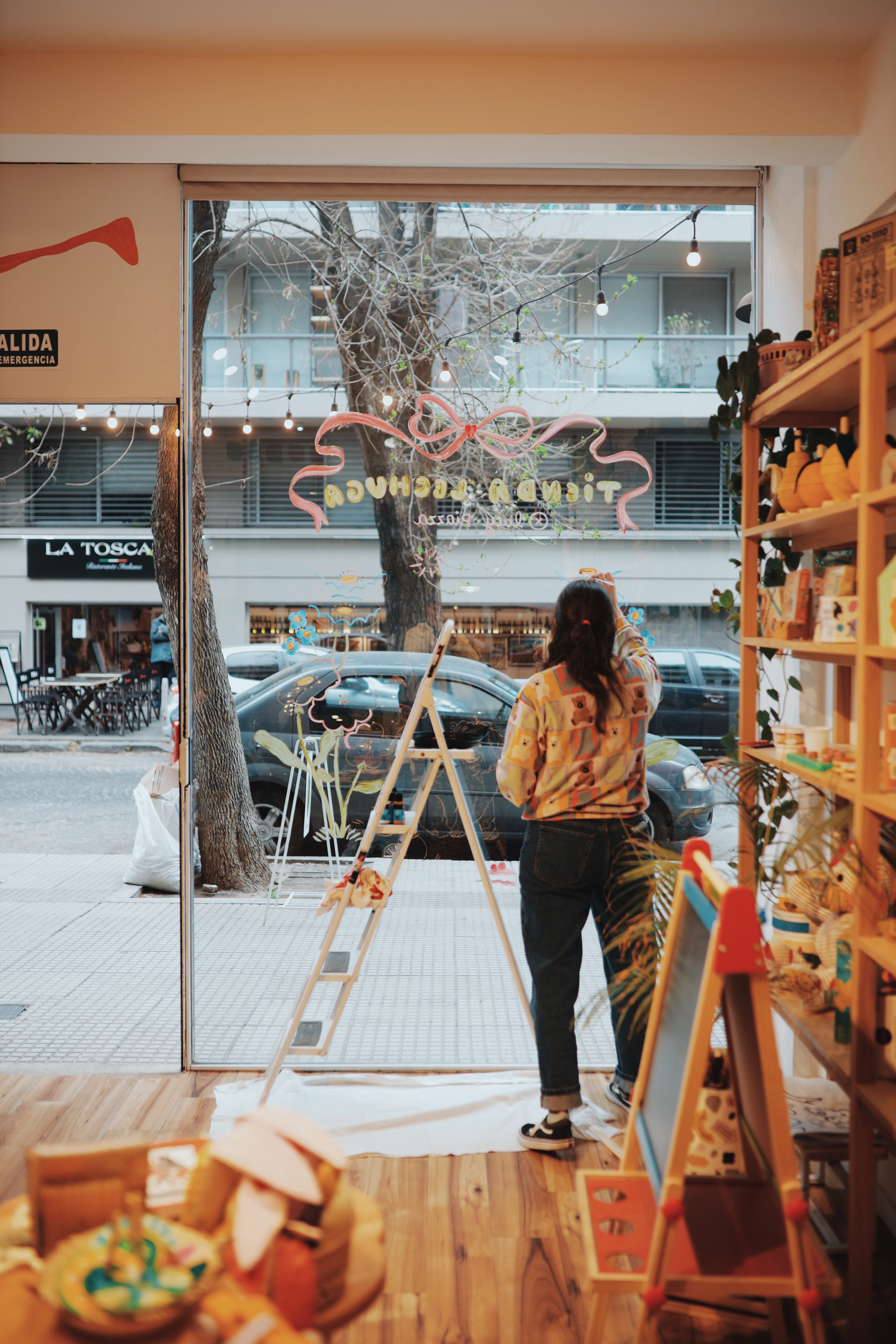 Fui invitada para crear una vidriera llena de color, capturando la esencia de la primavera en Buenos Aires y también en tributo a Pomelo -uno de los fundadores de la tienda- símbolo de la ternura que acompañaba cada tarde.